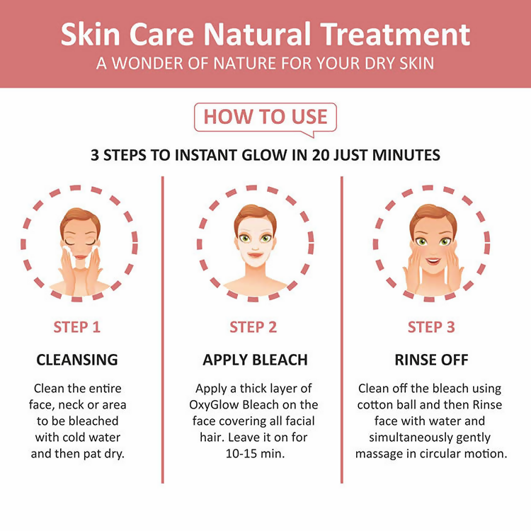 • OxyGlow Lacto Bleach Anti-Tan Pack helps bleach facial hair as well as clears suntan from the face. Honey and milk are rich antimicrobial agents to work deep within to reduce melanin content in your skin to make it naturally glowing and nourished. This anti-tan bleach helps brighten and purify your skin by removing dead skin cells from the surface of the skin to give an instant glow to the face.