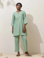 trueBrowns Mint Green Cotton Linen Kurta Co-Ord Set - Distacart