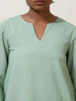 trueBrowns Mint Green Cotton Linen Kurta Co-Ord Set - XS