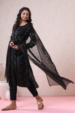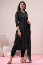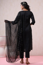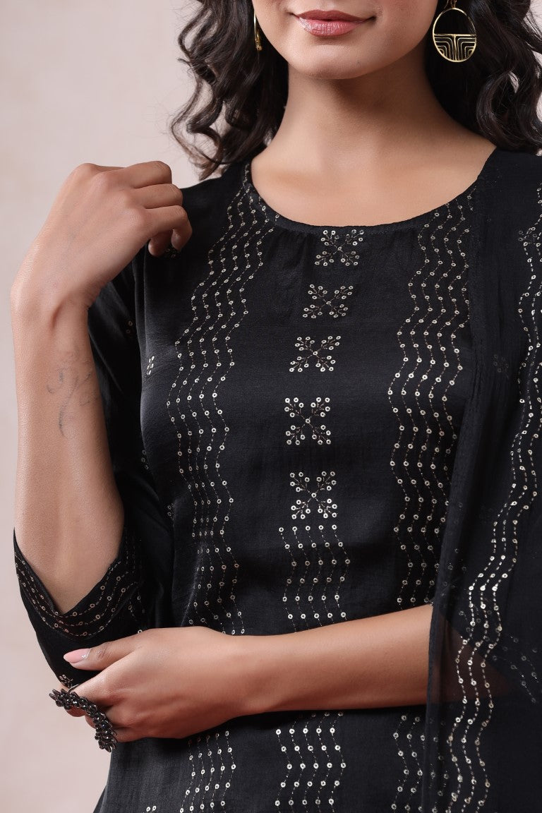 Yufta Chanderi Black Printed Kurta Dupatta Set - Distacart Yufta Chanderi Black Printed Kurta Dupatta Set