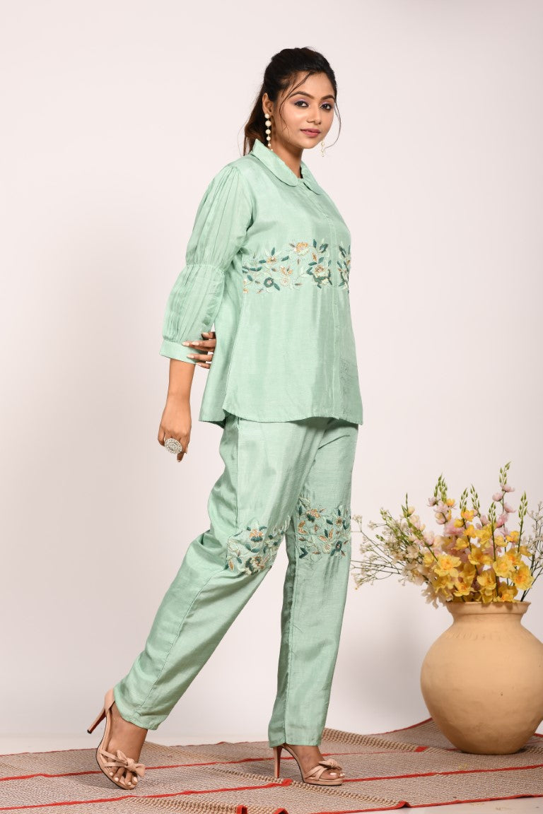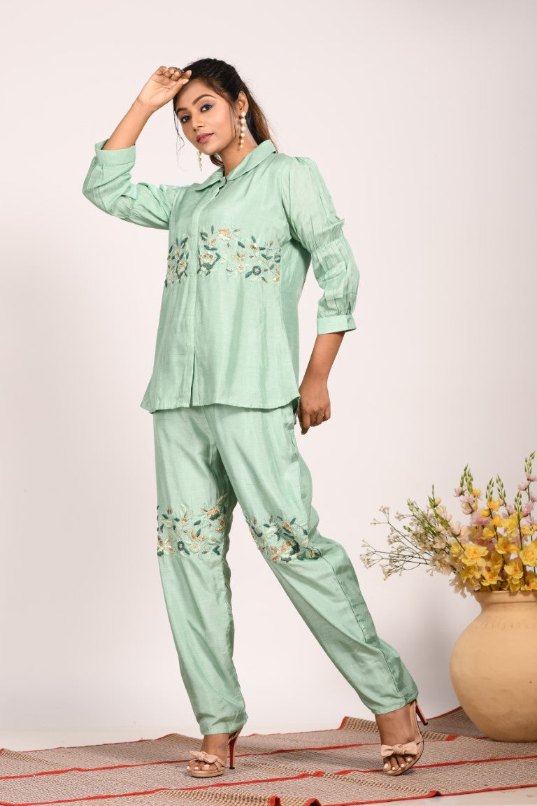 Morchari Co Ord Set With Hand Embroidery - Green