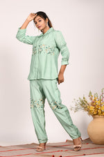 Morchari Co Ord Set With Hand Embroidery - Green - XL