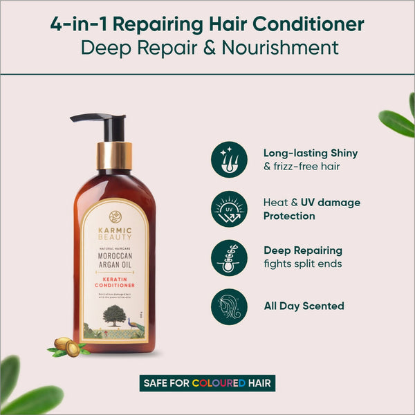 • 𝟰 𝗶𝗻 𝟭 𝗡𝗢𝗨𝗥𝗜𝗦𝗛𝗜𝗡𝗚 𝗔𝗥𝗚𝗔𝗡 𝗢𝗜𝗟 & 𝗣𝗨𝗥𝗘 𝗞𝗘𝗥𝗔𝗧𝗜𝗡 𝗖𝗢𝗡𝗗𝗜𝗧𝗜𝗢𝗡𝗘𝗥- Designed to enhance Hair Health, ensure Frizz-Free Locks, provide Deep Hydration and Nourishment, deliver Natural Shine and Luster and protect against UV & Environmental Damage.