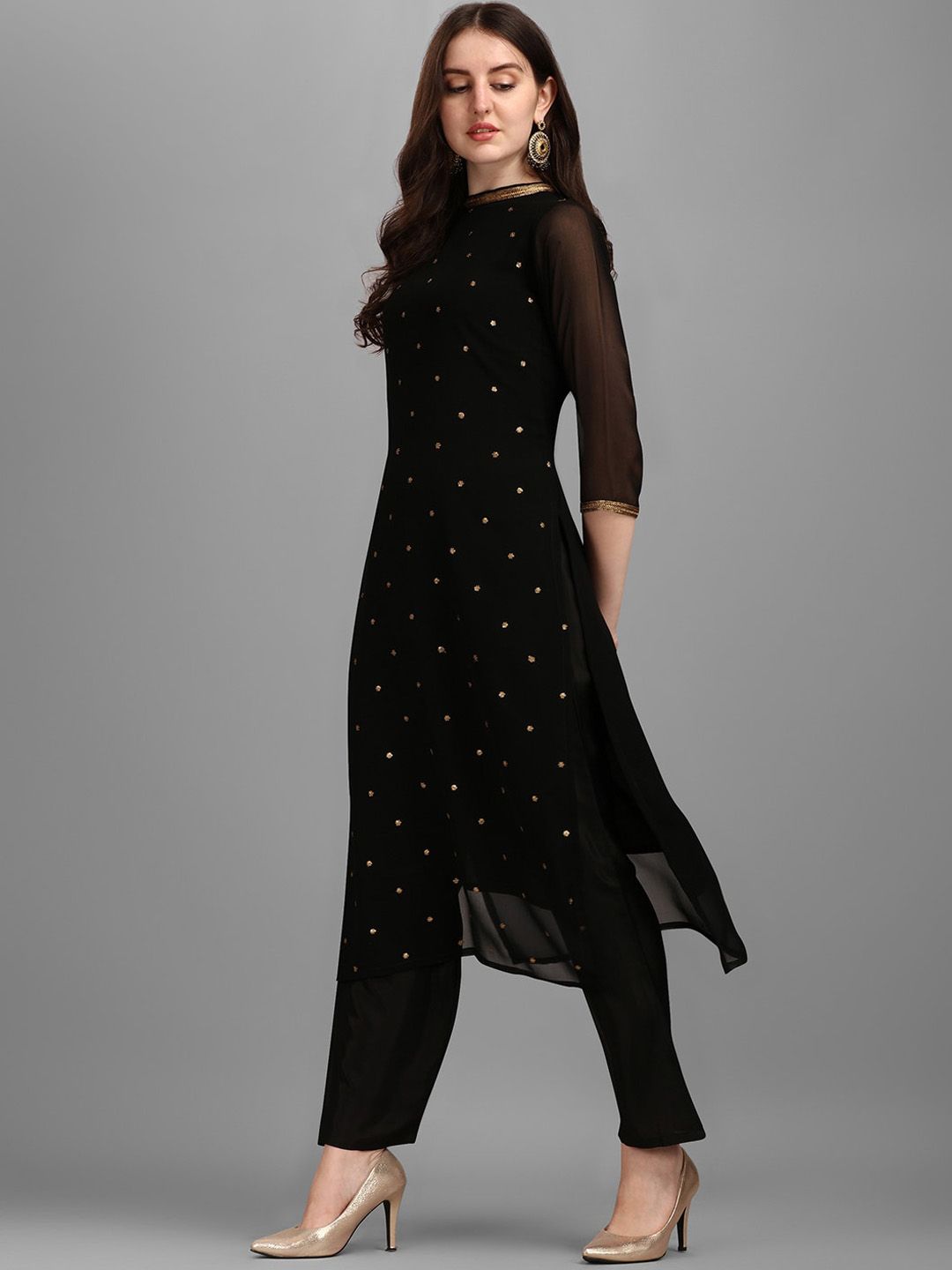 Kalini Floral Embellished Regular Straight Kurta With Trousers Product Details Black embellished Kurta with TrousersKurta design: Polka Dot Se...