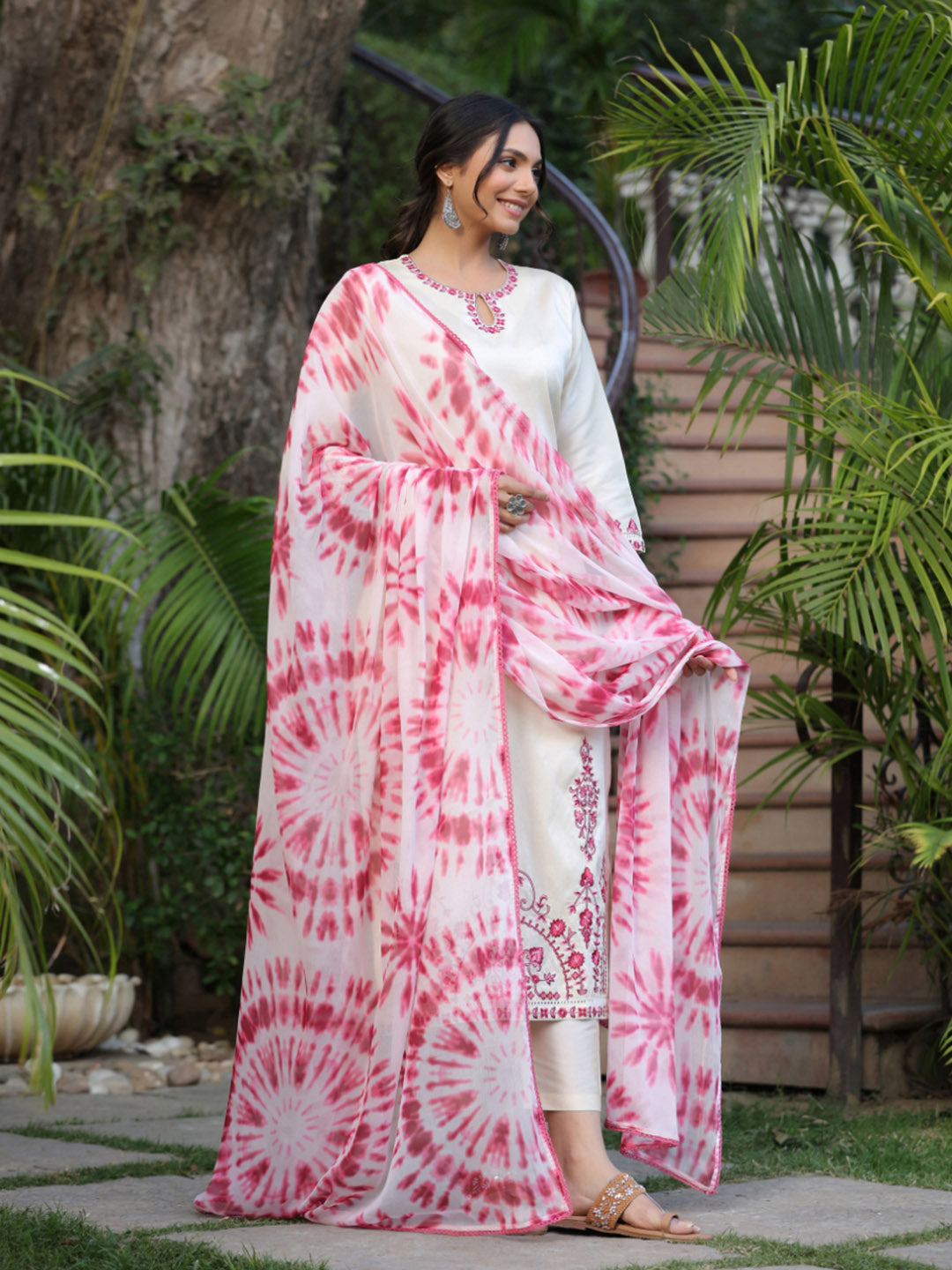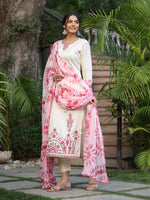 Cream-coloured embroidered Kurta with Trousers with dupatta