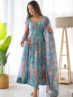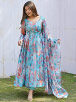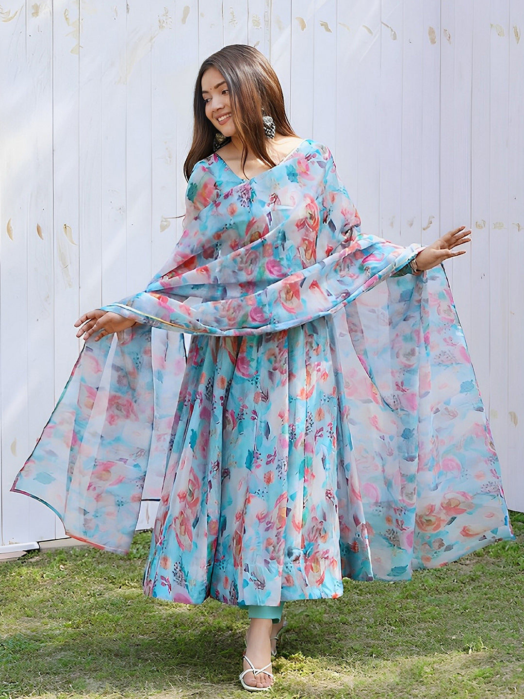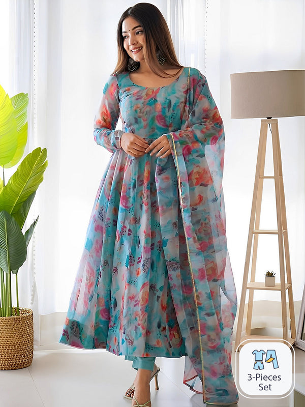 Kalini Floral Printed Gotta Patti Anarkali Kurta With Trousers & Dupatta