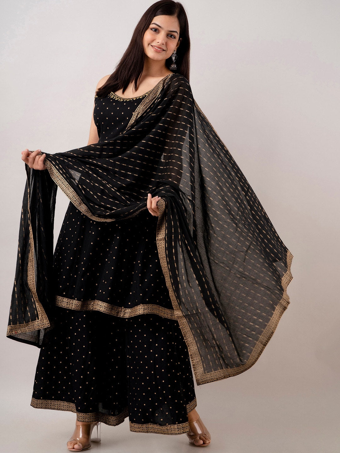 Kalini Women Embroidered Kurta With Sharara & Dupatta