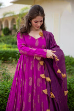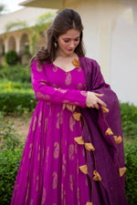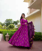 Purple Pure Reyon Gold Foil Work Stitched Suit With Dupatta - Anbazaar - Distacart