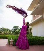 Purple Pure Reyon Gold Foil Work Stitched Suit With Dupatta - Anbazaar - XL(42)