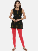 Souchii Red Solid Slim-Fit Churidar-Length Leggings