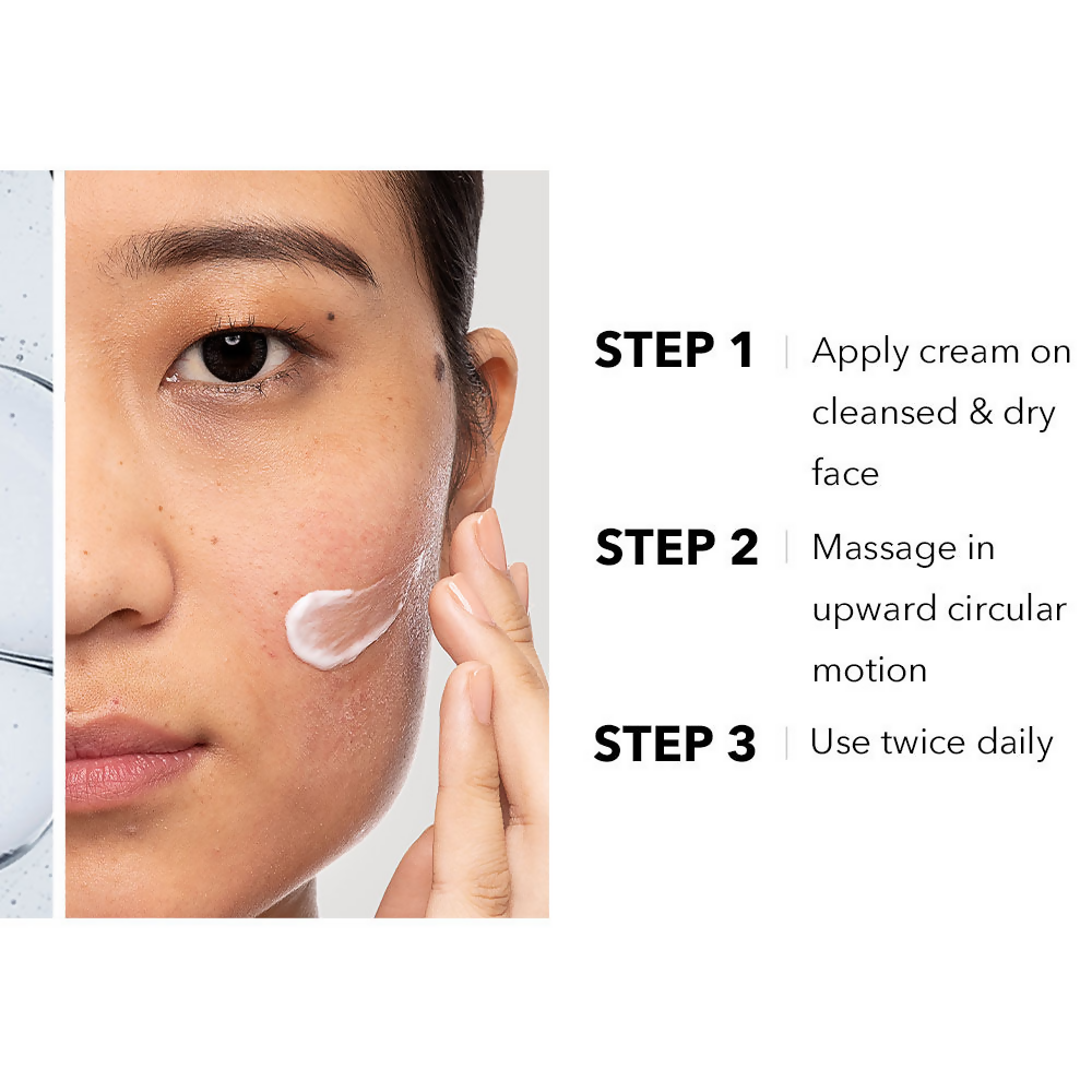• Gently apply the cream on a cleansed and dry face in an upward circular motion. Use twice daily.