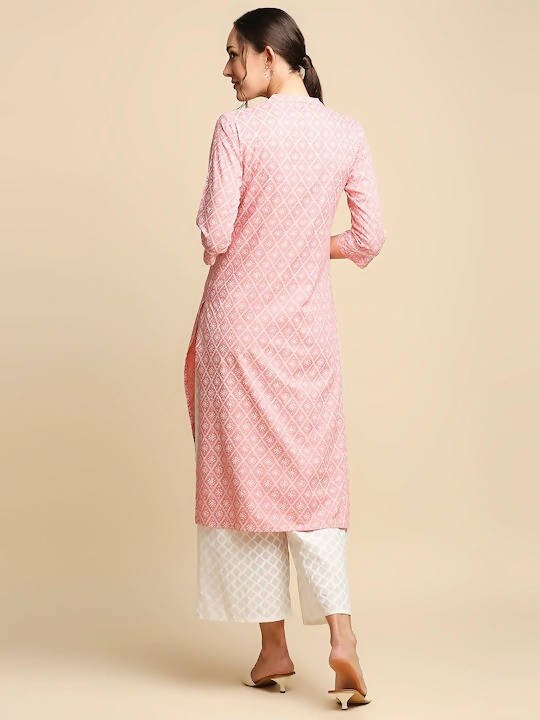Anubhutee Peach-Coloured & White Khari Printed Straight Kurta - Distacart