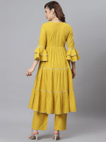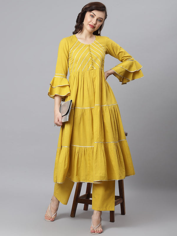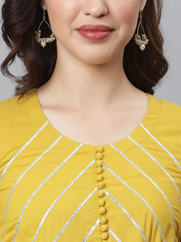 Khushal K Gotta Patti Pure Cotton Kurta with Palazzos Product Details Yellow self design Kurta with Palazzos Kurta design: Solid self desig...