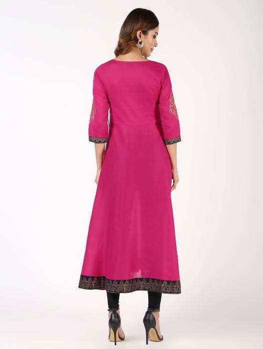 Lusting after luster when you wear this kurta by Aniyah. Crafted from cotton fabric, it is light in weight and will be soft against your skin. Its unique design and beautiful color will fetch a lot of second glances as you club it with contrast colored pumps and flashy accessory.