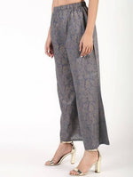 Aniyah Rayon Gold Print Flared Grey Palazzo (AN-155K) - S