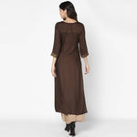 Cheera Hand Block Print Brown & Skin Color Straight Kurta With Palazzo (MAAI-081K) - S