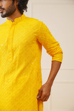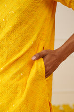 Jompers Men's Yellow Chikankari Embroidered and Sequence Kurta