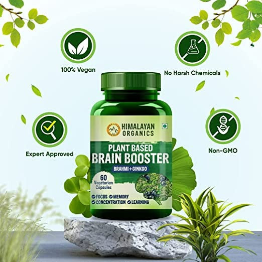 Himalayan Organics Brain Booster supplement is enriched with the goodness of Brahmi & Ginkgo Biloba extracts. Both of these natural herbs are rich in antioxidants & provide defense against oxidative cell and tissue damage from harmful free radicals. Brahmi & Ginkgo Duo is known to be extremely effective in maintaining healthy brain function and overall cognitive health.