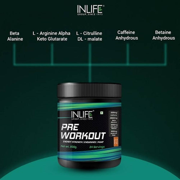 Inlife Pre-Workout Powder Orange Flavour - 200 gm