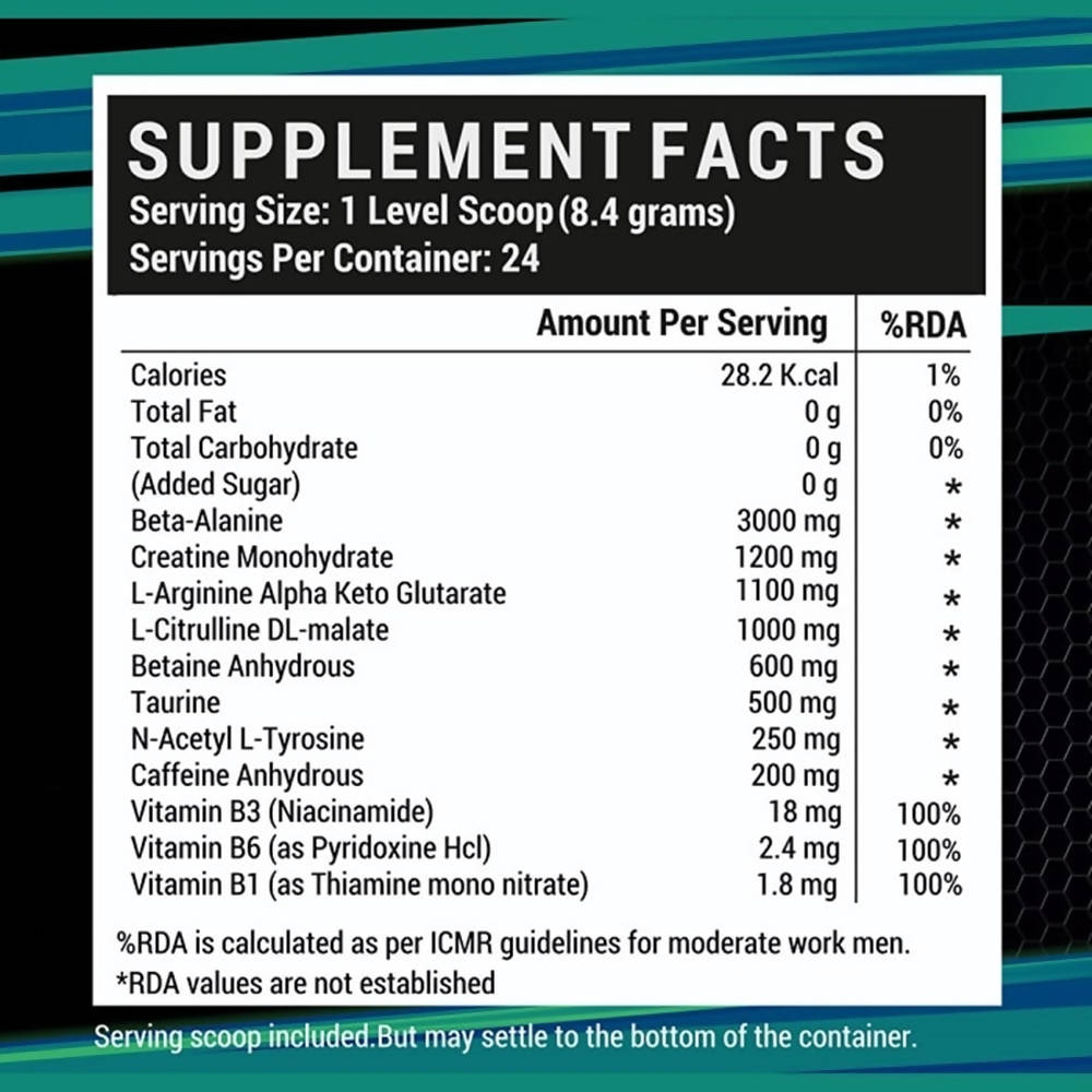 Inlife Pre-Workout Powder Orange FlavourKey Ingredients:Vitamin B3, Vitamin B6, Vitamin B1.Directions of use: Take 1 levelled scoop (8.4 gm) with 2...