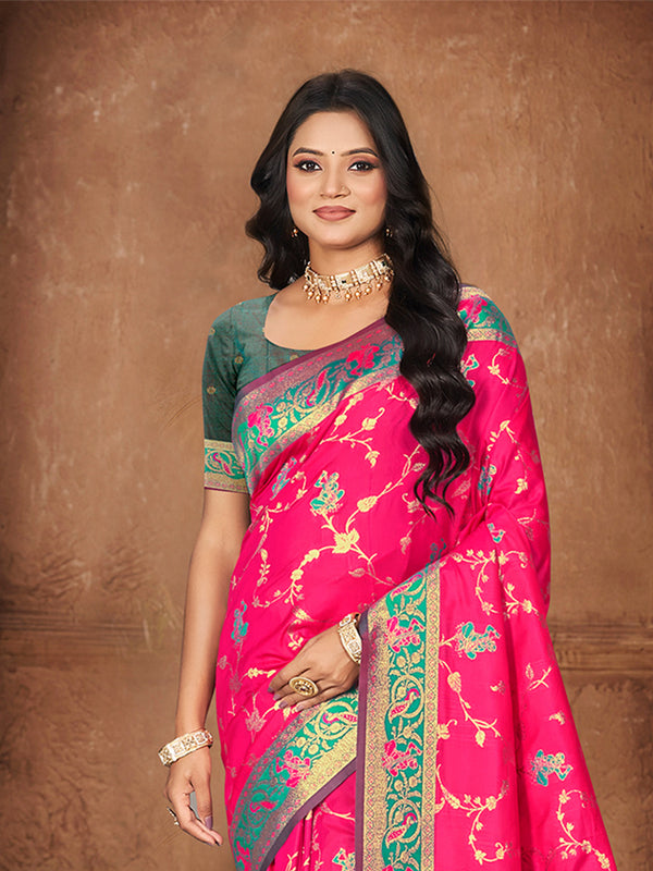 Sangam Prints Rani Pink Silk Woven Work Traditional Saree