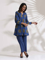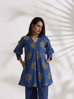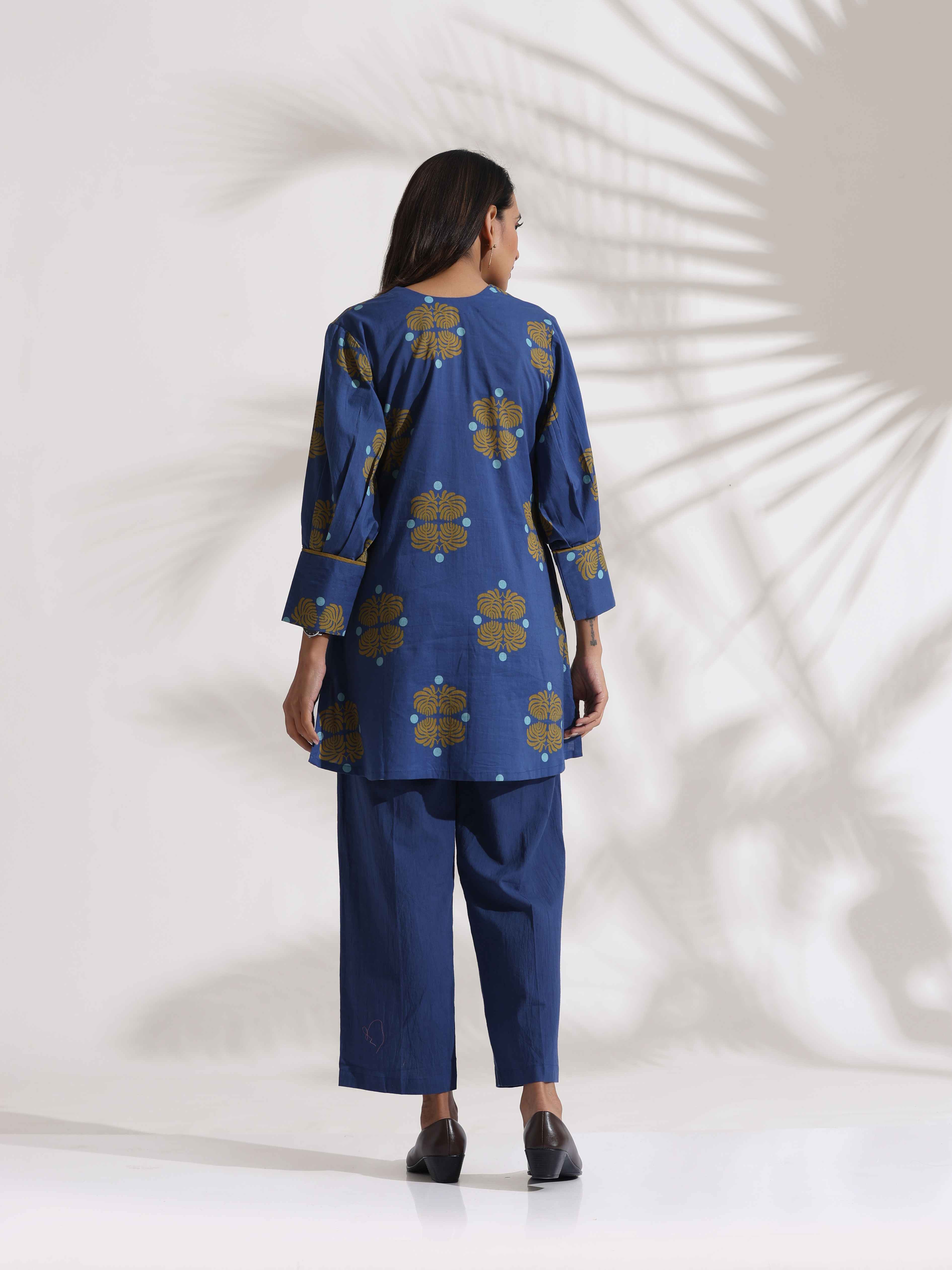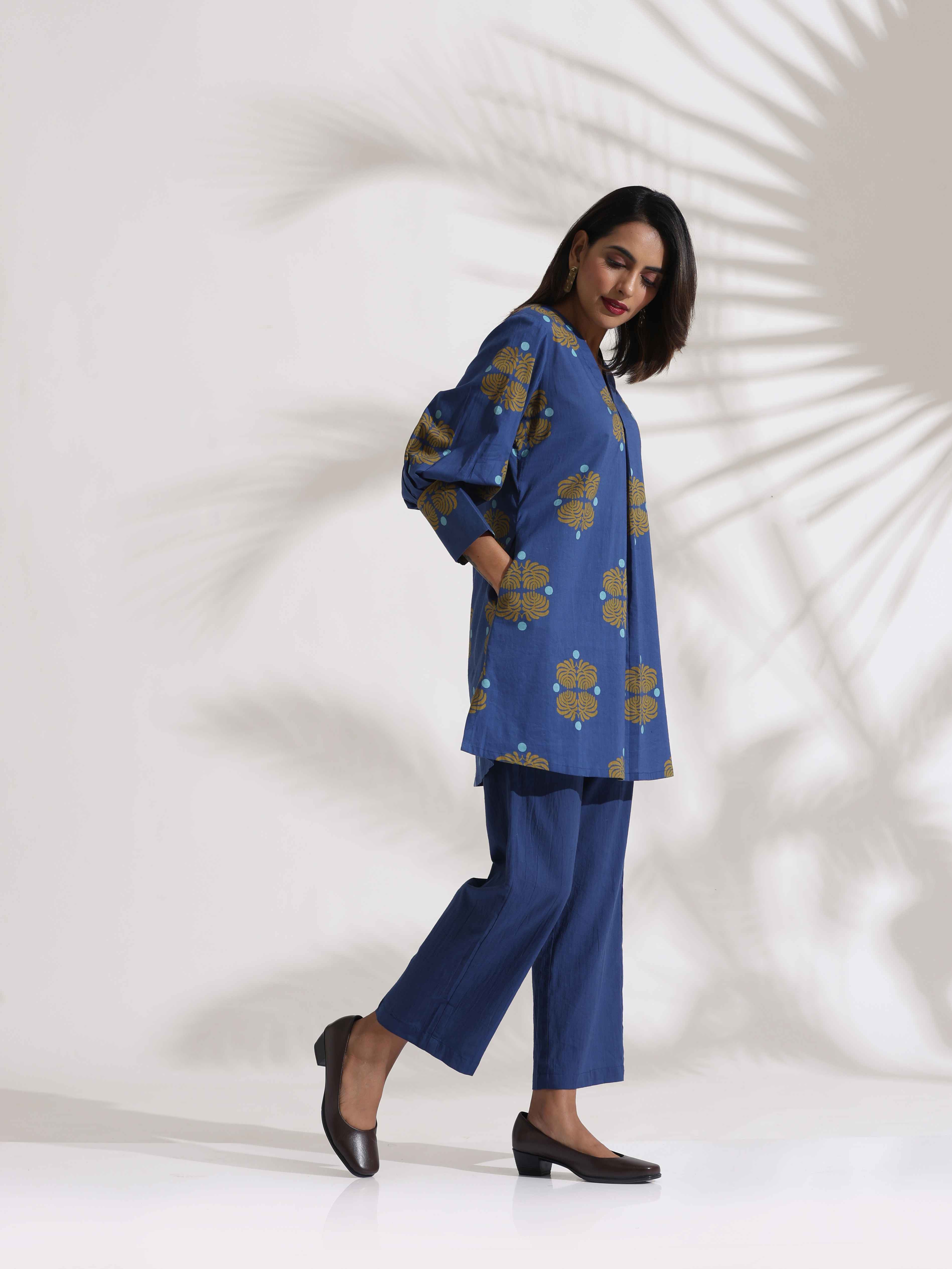 trueBrowns Blue Cotton Print Top & Pants Co-ord SetDescription Elevate your style with this blue cotton printed top which has front pleat for a...