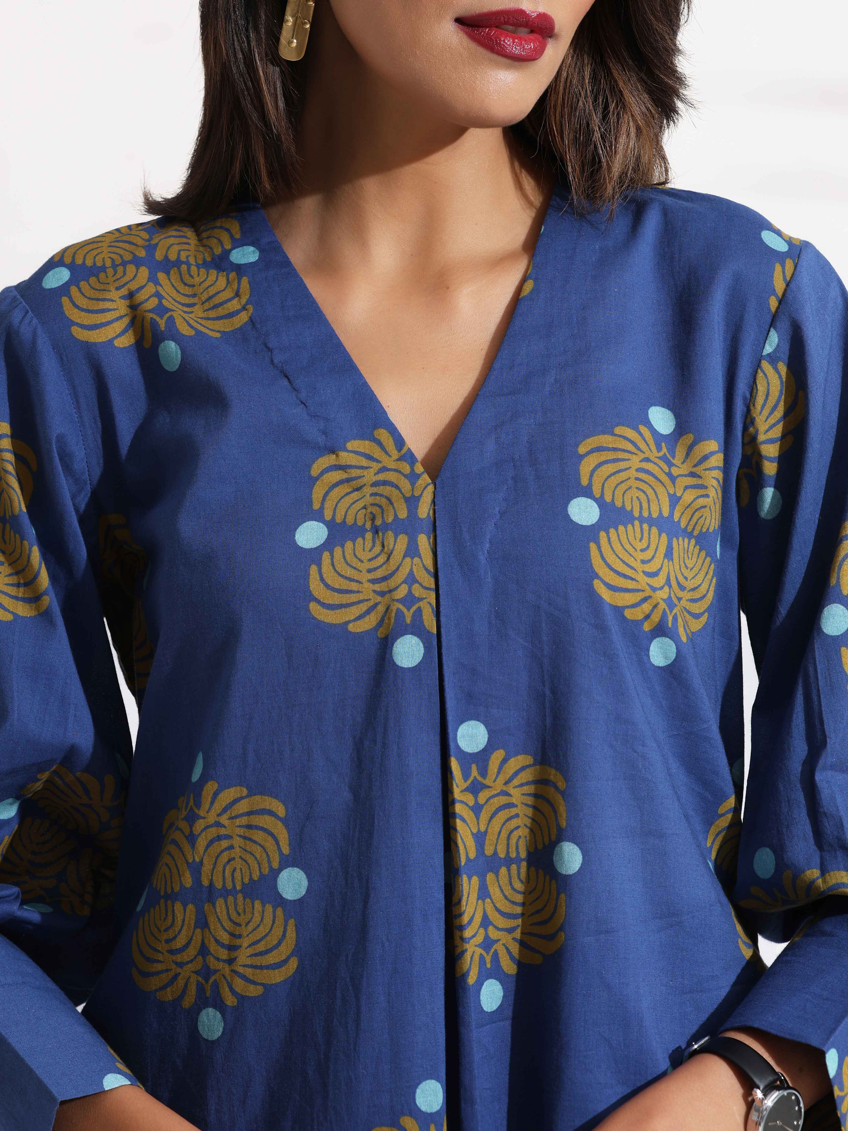 • Elevate your style with this blue cotton printed top which has front pleat for add on detail, it's an ideal blend of elegance and comfort.