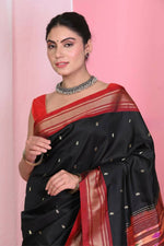 Very Much Indian Traditional Black Pure Silk Paithani With Red Border & Double Pallu - Distacart