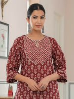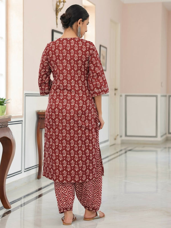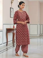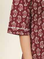 Aramya Straight Soft Cotton Block Print Women's Kurta - Brown - M