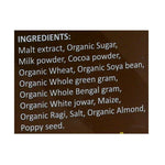 • 100% Organic whole wheat, soya bean, green gram, Bengal gram, jowar, maize, ragi, almond and poppy seeds, organic sugar, organic cocoa powder, milk solids, malt extracts, and salt.