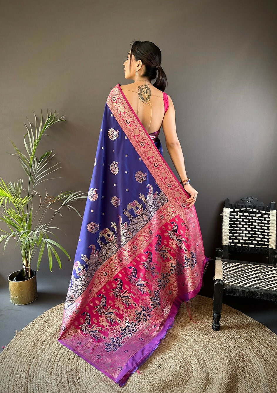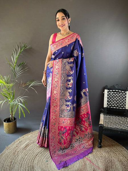 Joban Fashion Magenta Meenakari Picock Paithani Sarees