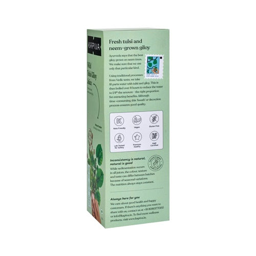 The combination of the two most beneficial herbs in Ayurveda, Kapiva brings to you the goodness of Tulsi and Giloy in one powerful package. We carefully handpick the herbs so that you could enjoy the maximum health benefits of the juice. Enriched with essential vitamins and anti-oxidant properties, this 2 in 1 juice is surely your go-to guide for good health.