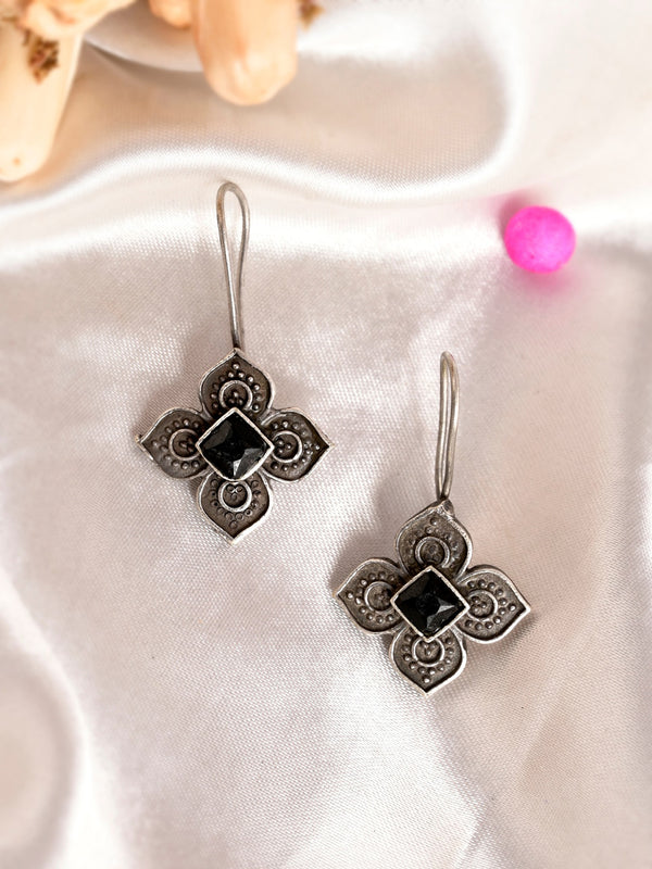 Shoshaa Silver Plated Floral Drop Earrings - Distacart