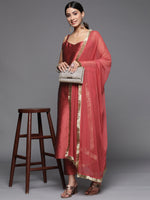 Burgundy Spaghetti Strap Kurta With Tonal Bottom And Dupatta , Without Sleeves, Side Slits , Stright Hemline , V- Neck Line , Dupatta Has 4 Side Frindged