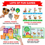 • The activities help 1-year-olds learn and develop better. The books, rhyme cards, and flashcards build vocabulary and language skills. The farm animal masks develop imagination and creativity. The 'Who's in the House?' game supports brain development and improves memory.