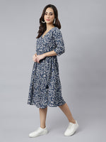 Janasya Dark Cotton Floral Angrakha Dress - XS