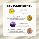 Enriched with the richness of slow-churned, 100 times washed pure ghee & real 24K gold, the luxurious Deep Nourishing Body Butter leaves your skin intensely moisturised & beautifully radiant. Infused with bakuchiol & 6 Ayurvedic herbal actives like Majith, Naagkesar, Neelkamal, Mulethi, Chandan & Priyangu - this body butter is an ideal pick for dry, winter season as it helps fight signs of ageing, improve skin elasticity & add a healthy glow.