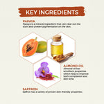 • Papaya Extracts, Saffron, Almond oil, Wheatgerm Oil, Apricot Kernel Oil, Lemon Peel Clove Oil.