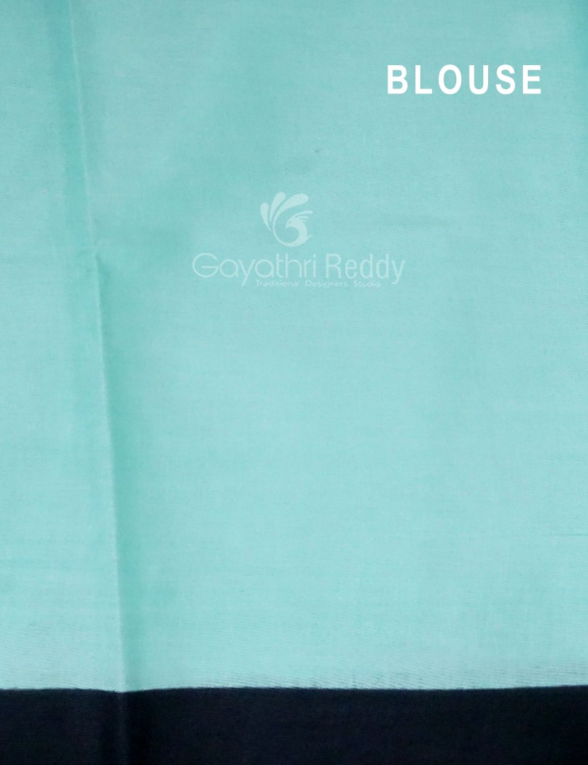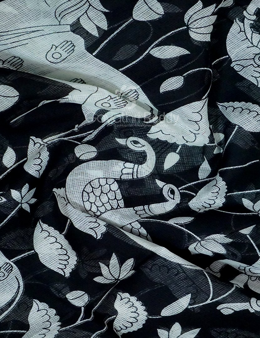 SAREE : Shades of black and mint green colour combination saree with pichwai print design with pure vegetable dyes all over the saree .