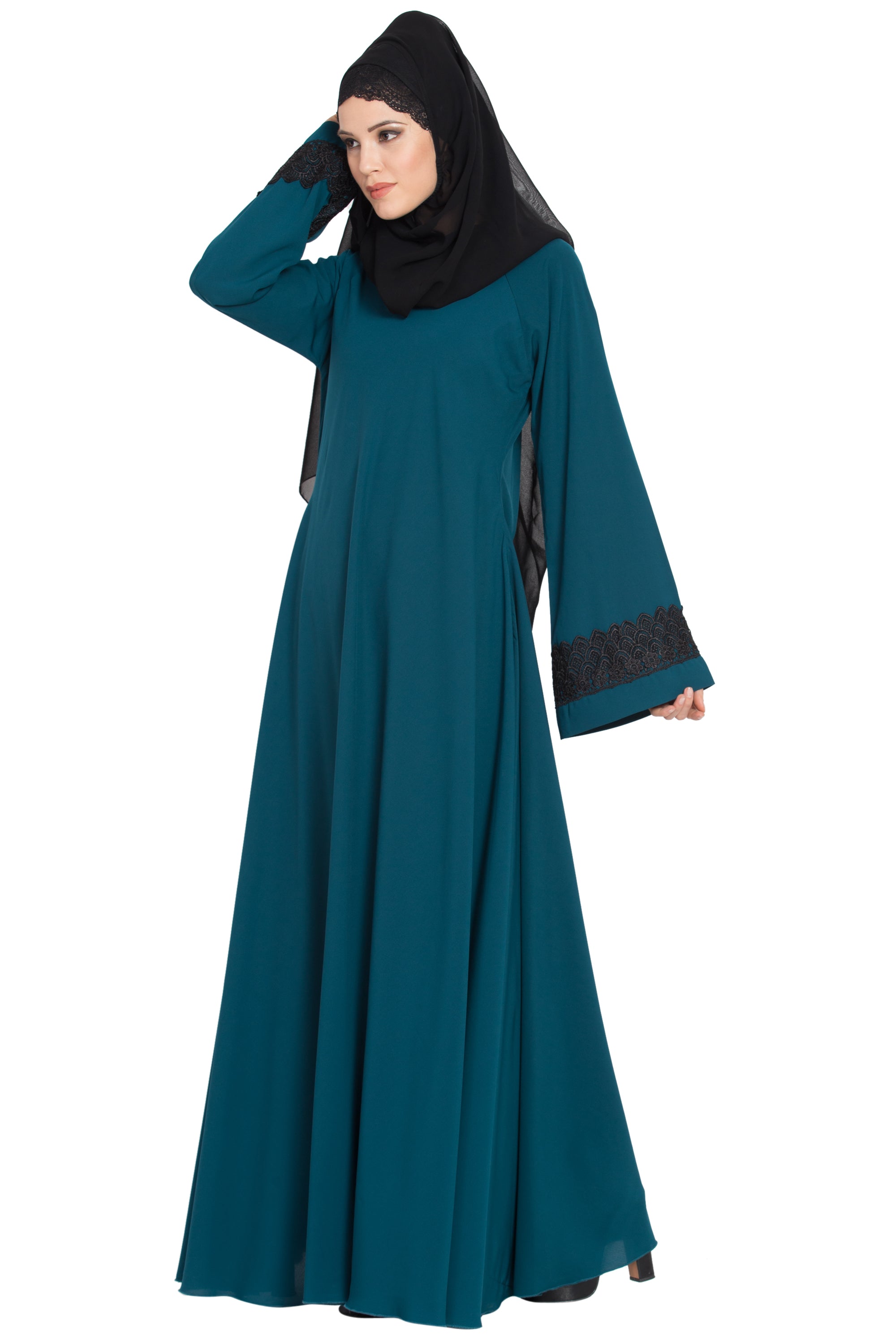 Bashariya Umbrella Flare Abaya With Lacework On Sleeves