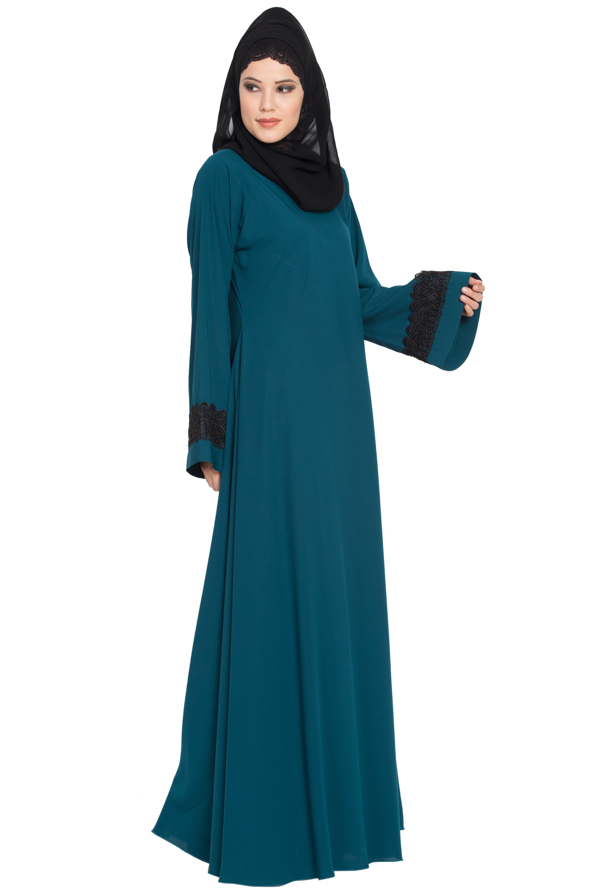 Bashariya Umbrella Flare Abaya With Lacework On Sleeves - S