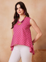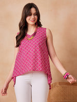 InWeave Pink Pyramid Kantha High Low W/S Top