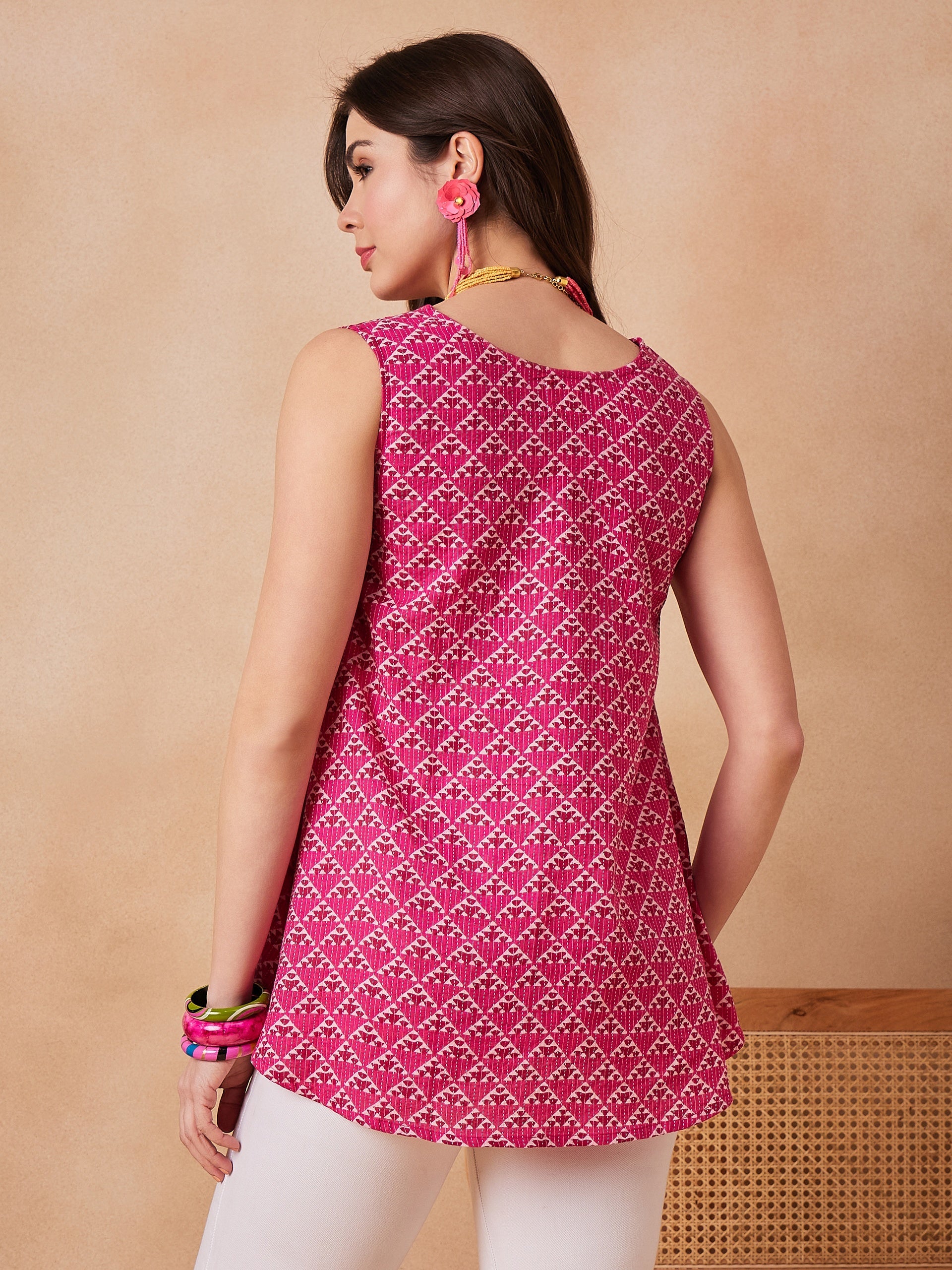 InWeave Pink Pyramid Kantha High Low W/S Top - S