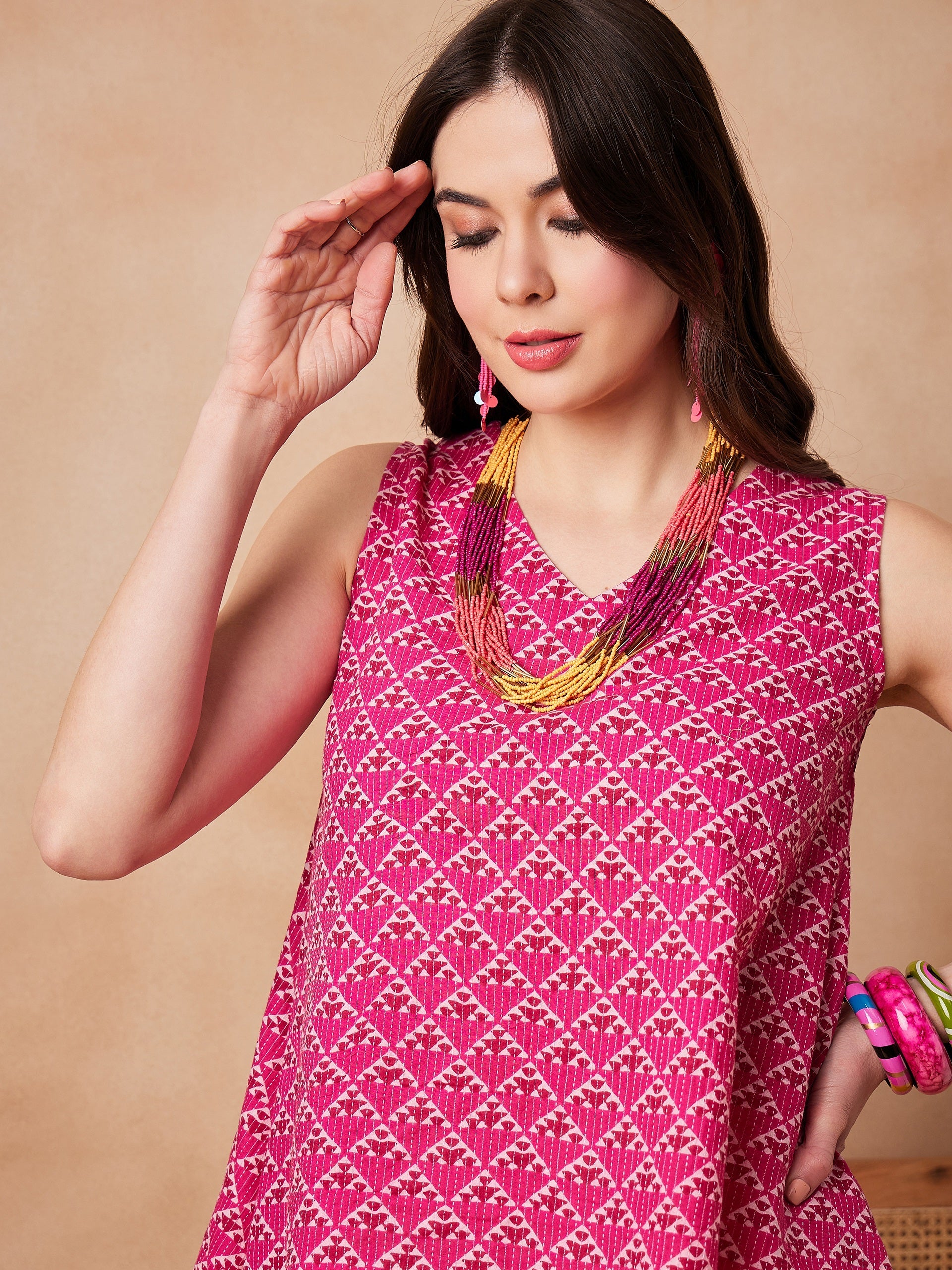 InWeave Pink Pyramid Kantha High Low W/S Top - Distacart