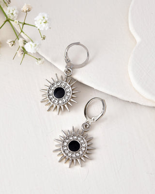 Jewels Nest Stainless Steel Evil Eye Sunburst Dangle Earrings with Crystal Embellishments - Distacart