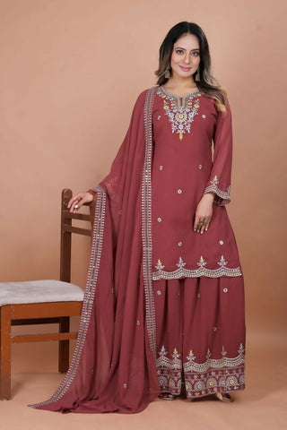 Joban Fashion Maroon Georgette Embroidered Sharara Set
