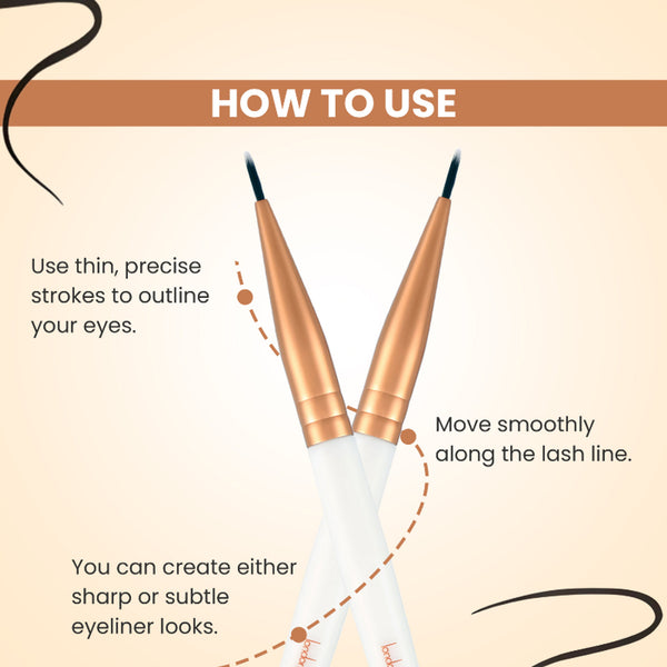 Glam strokes Precision Eyeliner brush is the perfect tool for outlining the eyes with thin line. A flat eyeliner brush that applies an even amount of liner along the lash line for uniform definition.