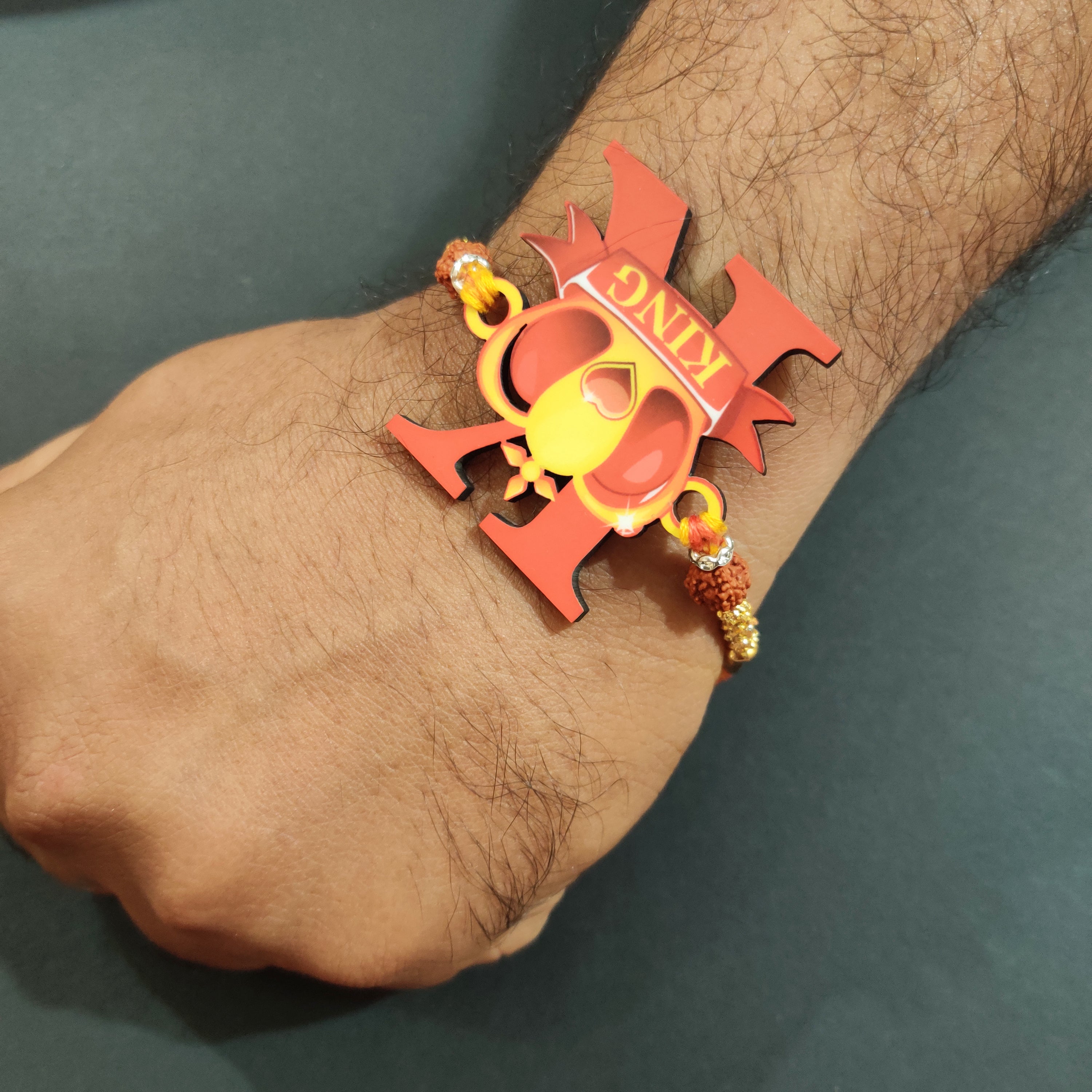 Indianvibez Royal King Bhai Wooden Rakhi, Rudraksha Rakhi for Brother - Kids Rakhi