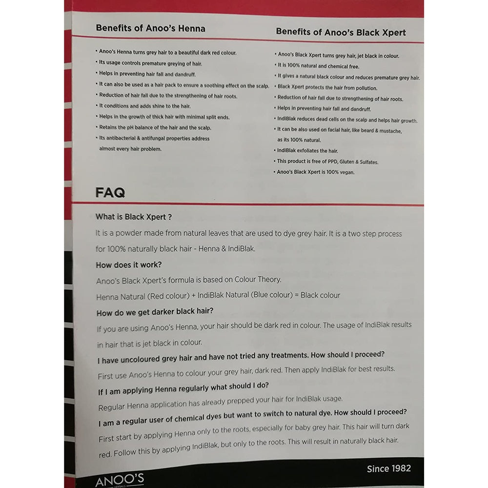 Anoos Black Expert is made with 100% pure henna.