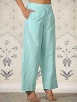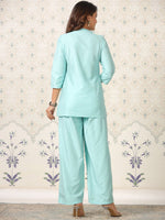 Ode by House of Pataudi Ethnic Motifs Embroidered Mirror Work Kurti with Palazzos Product Details Turquoise blue embroidered Kurti with Palazzos...